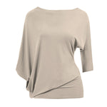 Ideal for the modern woman with personality, the Invel® Asymmetrical T-Shirt has geometric modeling, boat neckline, ¾ sleeve on the left side and bat sleeve on the right side, which...