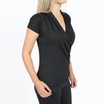 The Invel® Braided Blouse has a V-neck and pence detail on the right side, forming a light braid. It can be used at work or on more special occasions. Its fabric contains the exclusive MIG3® Bioceramic technology